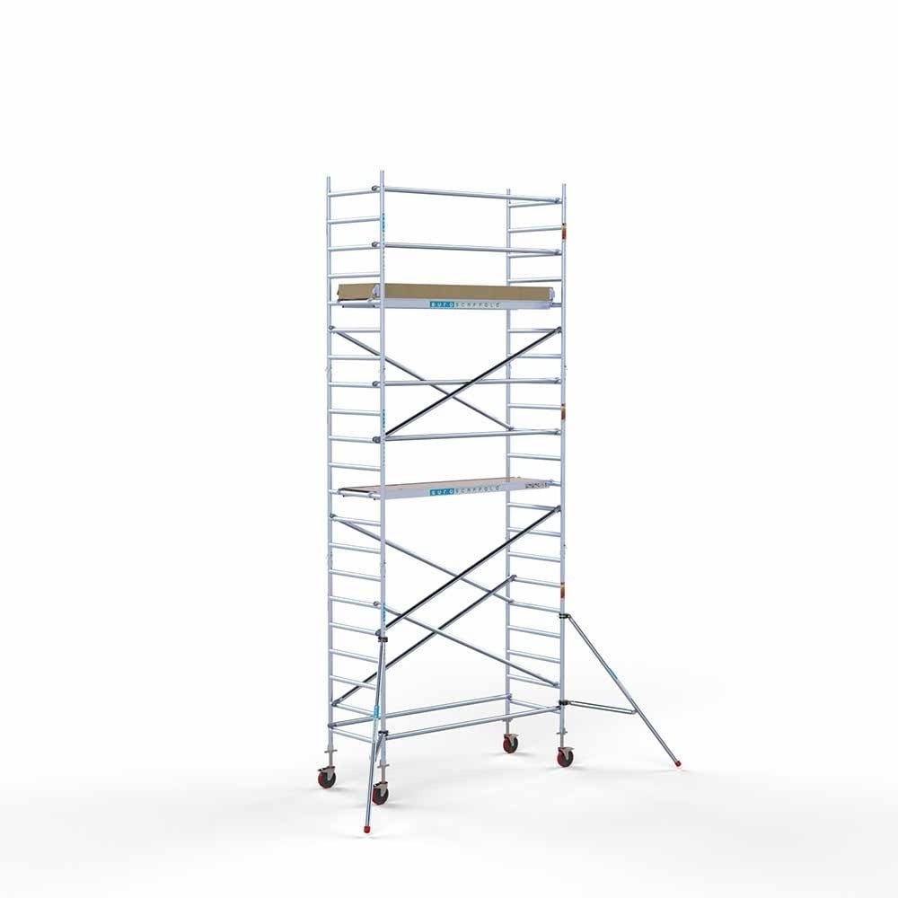Ben je op zoek naar een lichte en duurzame rolsteiger voor semi-professioneel gebruik? Dan is de Euroscaffold basis rolsteiger een goede optie. Deze rolsteiger is gemaakt van hoogwaardig aluminium en is eenvoudig op te bouwen en te verplaatsen. Door de aangepaste opbouw, en het gebruik van minder onderdelen, kunnen wij u deze rolsteiger zeer voordelig aanbieden zonder in te leveren op de veiligheid.