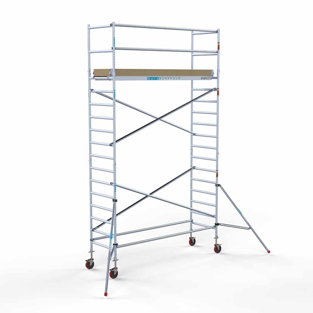 Ben je op zoek naar een lichte en duurzame rolsteiger voor semi-professioneel gebruik? Dan is de Euroscaffold basis rolsteiger een goede optie. Deze rolsteiger is gemaakt van hoogwaardig aluminium en is eenvoudig op te bouwen en te verplaatsen. Door de aangepaste opbouw, en het gebruik van minder onderdelen, kunnen wij u deze rolsteiger zeer voordelig aanbieden zonder in te leveren op de veiligheid.