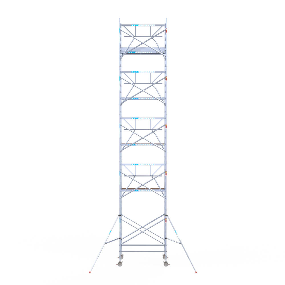 Let wel; Door de vernieuwde EN 1004 norm en het A-blad rolsteigers voldoen de Euroscaffold Euro met enkel schoren zonder voorloopleuning niet meer aan de regelgeving voor zakelijk gebruik. De Euro uitvoering met voorloopleuningen voldoen hier wel aan. Voor particulier gebruik is de uitvoering met schoren wel voldoende.