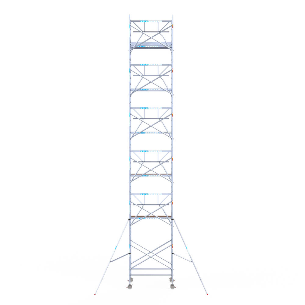 Let wel; Door de vernieuwde EN 1004 norm en het A-blad rolsteigers voldoen de Euroscaffold Euro met enkel schoren zonder voorloopleuning niet meer aan de regelgeving voor zakelijk gebruik. De Euro uitvoering met voorloopleuningen voldoen hier wel aan. Voor particulier gebruik is de uitvoering met schoren wel voldoende.