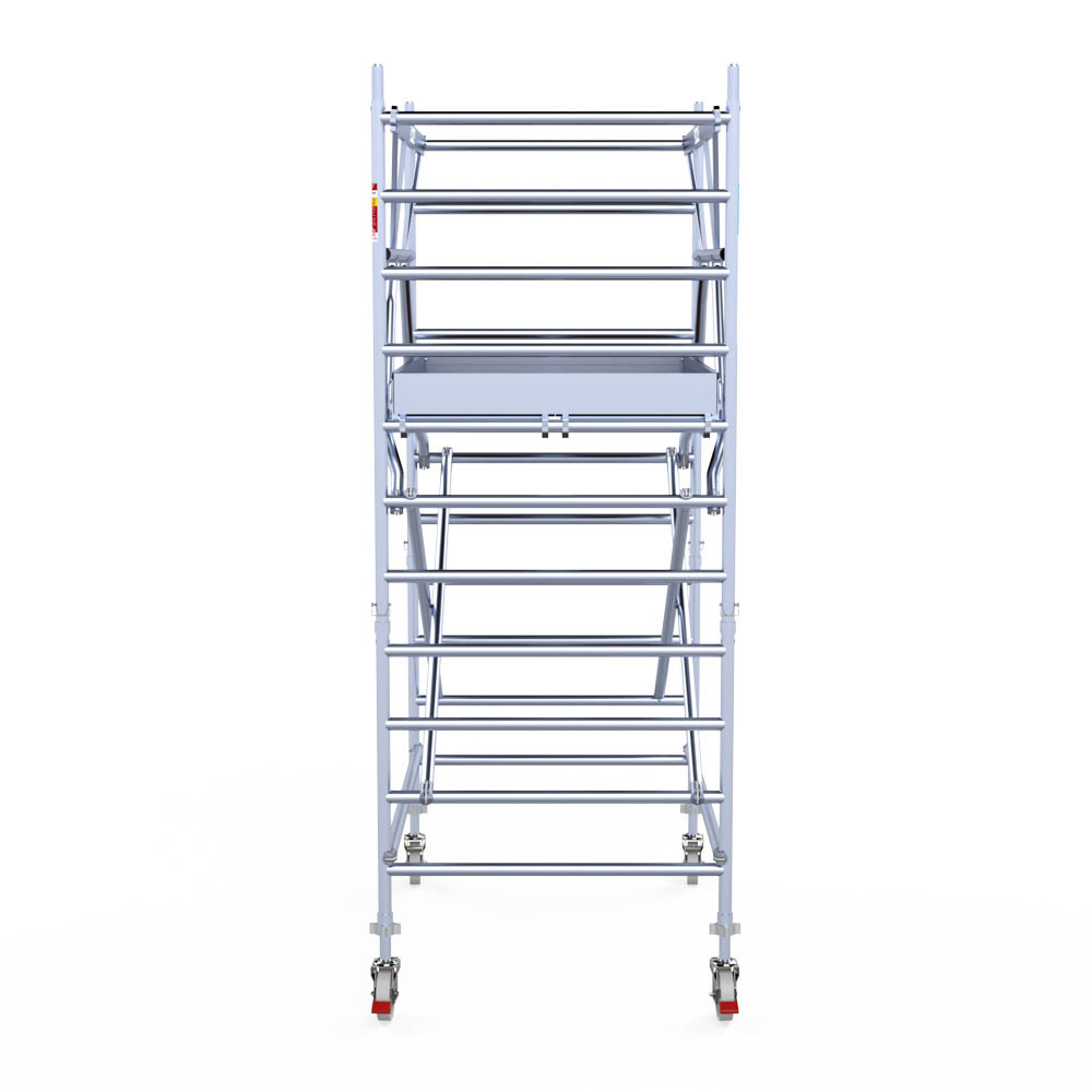 Deze rolsteiger heeft een steigerbreedte van 135, wat voor stabiliteit en stevigheid zorgt. De platformlengte is 190, wat voldoende werkruimte biedt. De werkhoogte van de rolsteiger is 4,2, waardoor je veilig op de gewenste hoogte kunt werken.