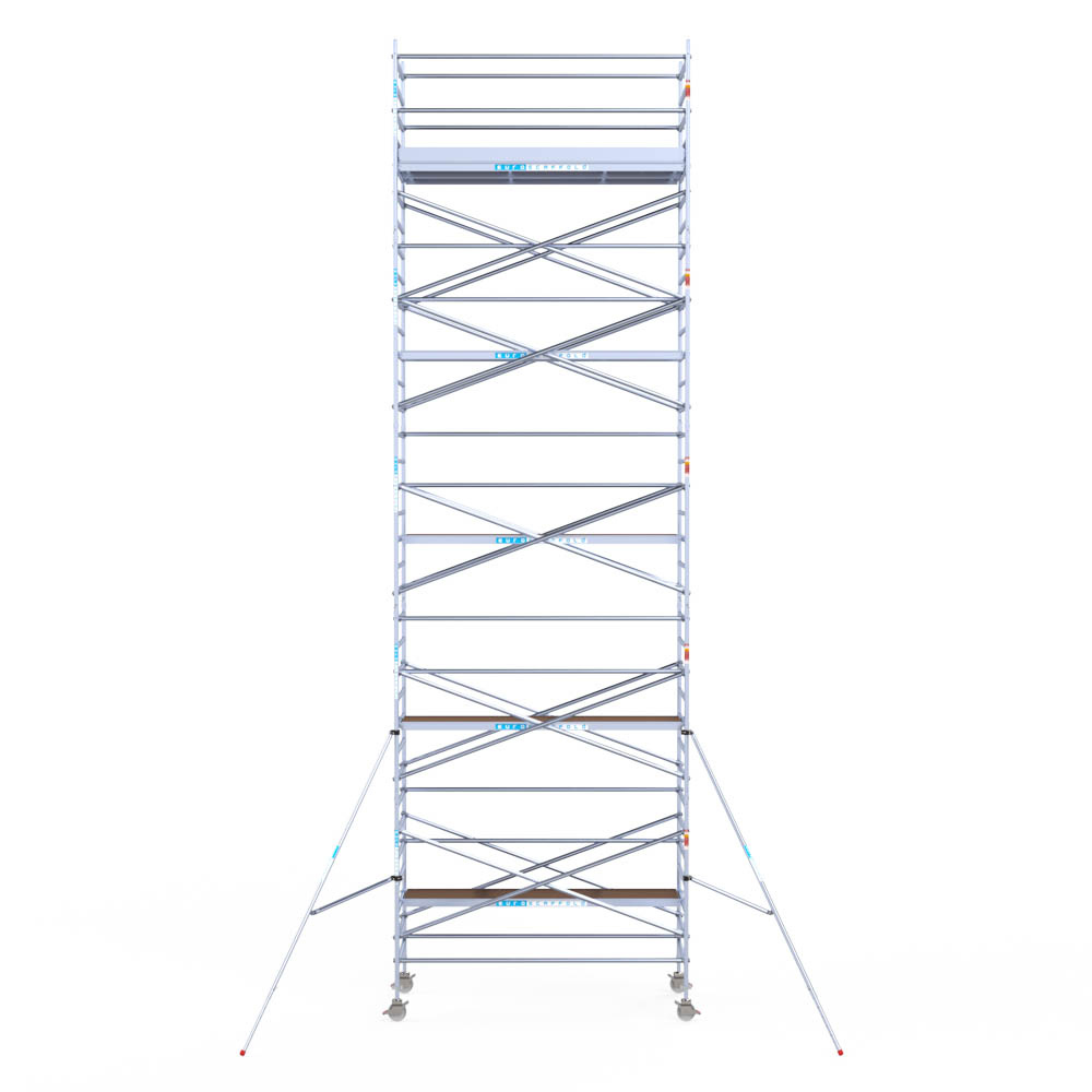 Let wel; Door de vernieuwde EN 1004 norm en het A-blad rolsteigers voldoen de Euroscaffold Euro met enkel schoren zonder voorloopleuning niet meer aan de regelgeving voor zakelijk gebruik. De Euro uitvoering met voorloopleuningen voldoen hier wel aan. Voor particulier gebruik is de uitvoering met schoren wel voldoende.