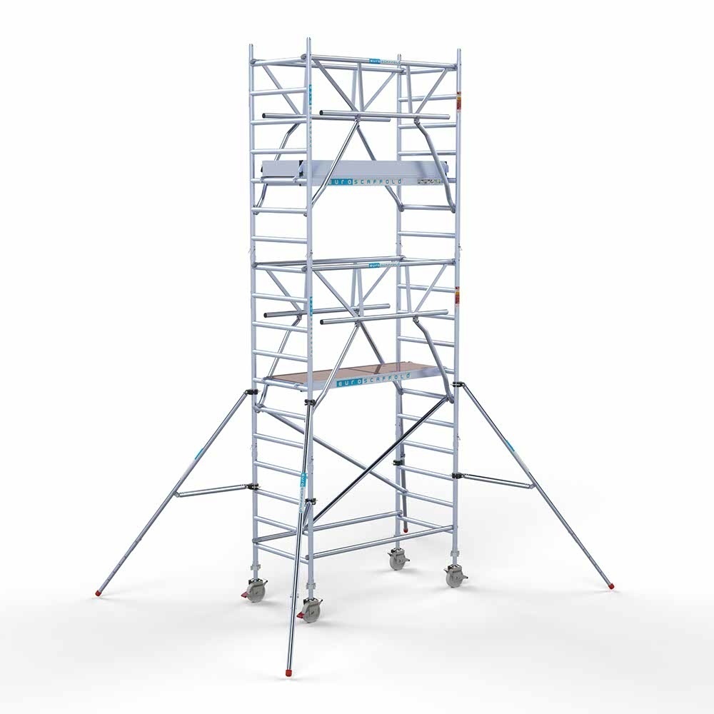 De Euroscaffold Compleet rolsteigers zijn uitgebreider, veiliger en handiger dan de rolsteiger basis, omdat ze beschikken over een extra platform en schoren of voorloopleuningen. Ze kunnen gebruikt worden voor zowel particulier als professioneel gebruik.