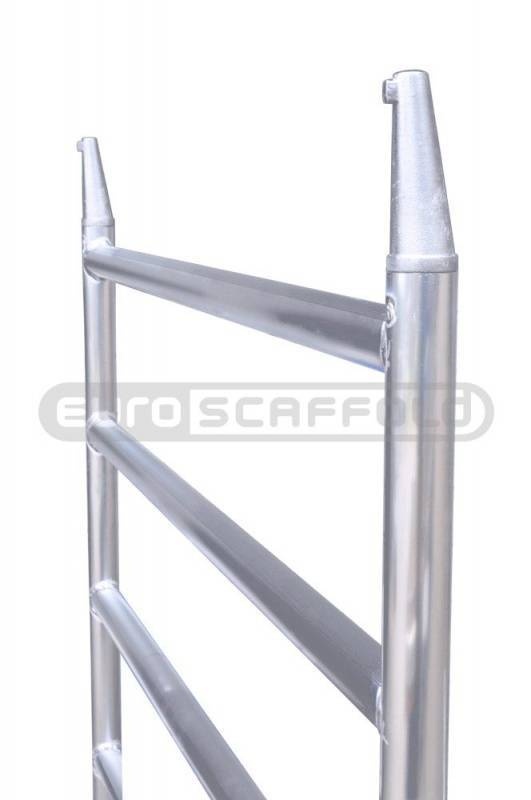 Let wel; Door de vernieuwde EN 1004 norm en het A-blad rolsteigers voldoen de Euroscaffold Euro met enkel schoren zonder voorloopleuning niet meer aan de regelgeving voor zakelijk gebruik. De Euro uitvoering met voorloopleuningen voldoen hier wel aan. Voor particulier gebruik is de uitvoering met schoren wel voldoende.