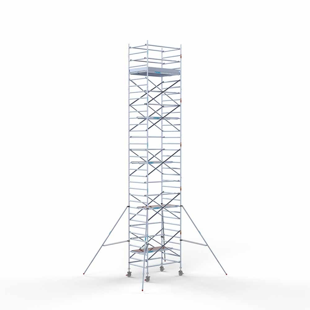 Let wel; Door de vernieuwde EN 1004 norm en het A-blad rolsteigers voldoen de Euroscaffold compleet met enkel schoren zonder voorloopleuning niet meer aan de regelgeving voor zakelijk gebruik. De Compleet uitvoering met voorloopleuningen voldoen hier wel aan. Voor particulier gebruik is de uitvoering met schoren wel voldoende.