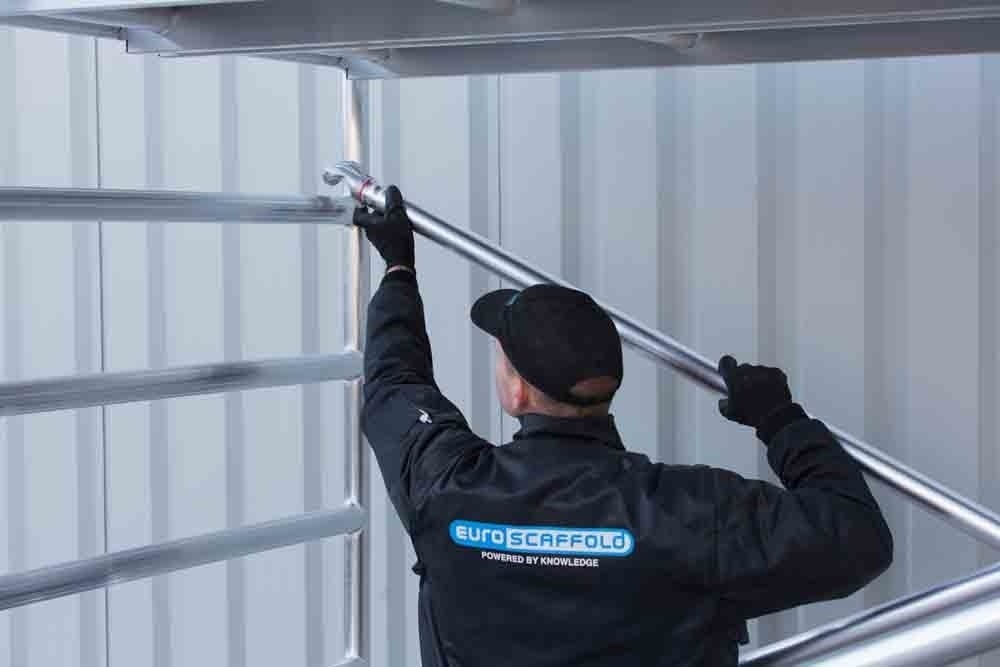 Let wel; Door de vernieuwde EN 1004 norm en het A-blad rolsteigers voldoen de Euroscaffold compleet met enkel schoren zonder voorloopleuning niet meer aan de regelgeving voor zakelijk gebruik. De Compleet uitvoering met voorloopleuningen voldoen hier wel aan. Voor particulier gebruik is de uitvoering met schoren wel voldoende.