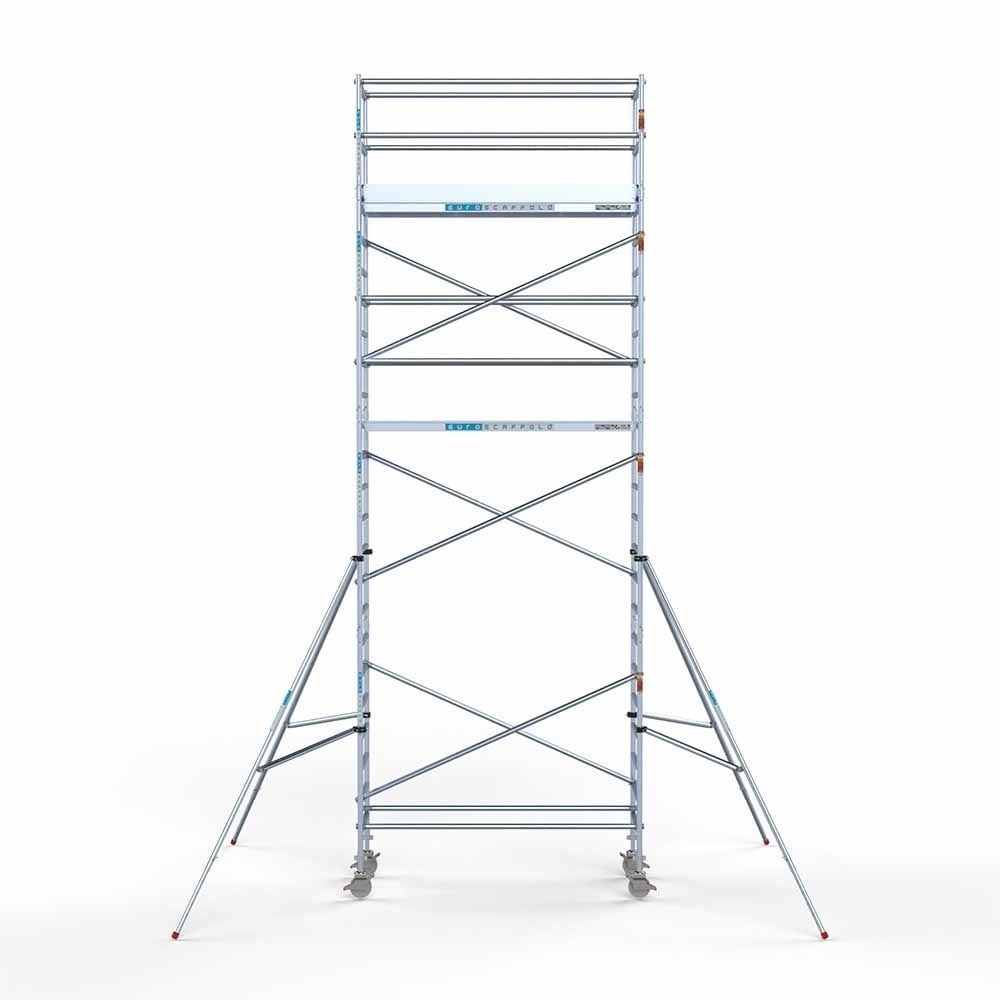 De Euroscaffold Compleet rolsteigers zijn in Nederland gefabriceerde rolsteigers die je kunt gebruiken voor professioneel gebruik. Deze rolsteigers zijn van stevig aluminium gemaakt en zijn makkelijk op te zetten en te verplaatsen. U kunt kiezen uit volledig schoren, met enkele voorloopleuning (bij werken tegen een gevel) of met dubbele voorloopleuning (vrijstaand).