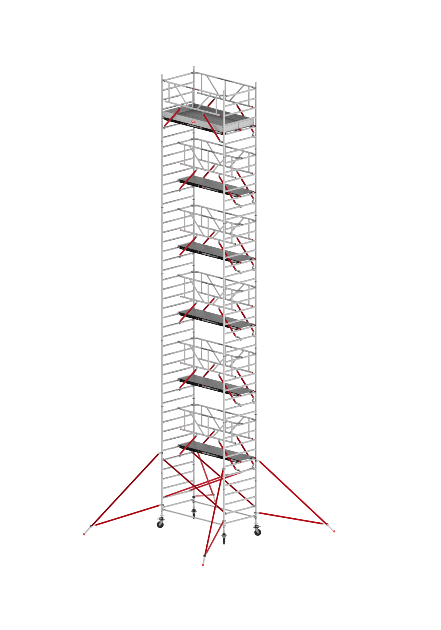 De Altrex RS Tower 52 rolsteiger is een flexibele en stevige rolsteiger die geschikt is voor elke professionele taak. Deze brede rolsteiger biedt een ruime werkruimte, omdat je twee platformen naast elkaar kunt plaatsen. De platformen zijn van hout en kunnen een gewicht van 250 kg per platform dragen. De steiger heeft een werkhoogte van 14,2, een steigerbreedte van 135 en een platformlengte van 245.